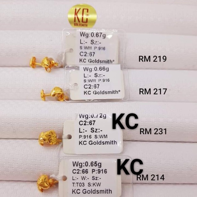 Chan Wah Gold Jewellery Anting Emas 916 Original Malaysia Subang Emas Korea Anting Emas 916 Original