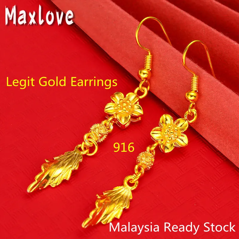 Maxlove Jewelry Earring For Women Gold 916 Original Malaysia Earrings Women Korean Style Legit Long Earrings Flower Leaf Earing Set For Girls Gold Jewellery Anting Emas 916 Original Malaysia Subang Emas Perempuan